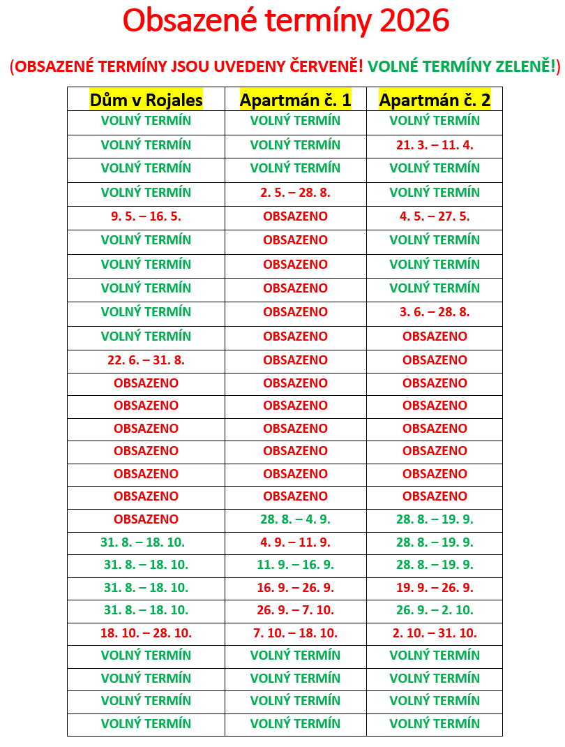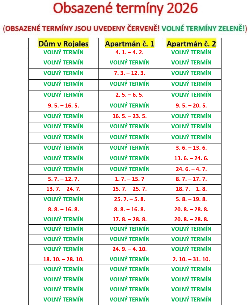 Bez ohledu na počet osob v domě bude dům/apartmán k dispozici vždy jen pro Vás, tedy nebude doplněna kapacita domu/apartmánu dalšími hosty.