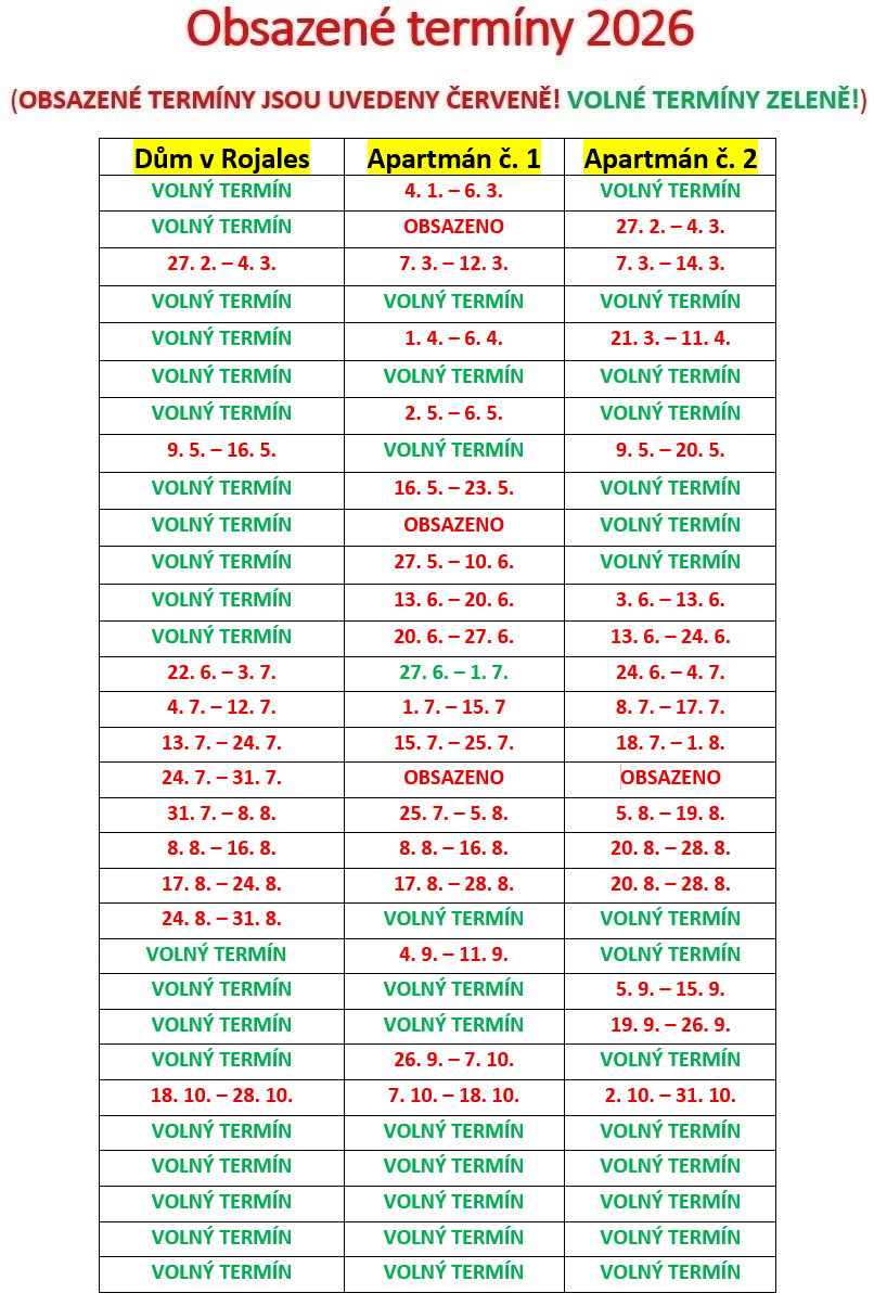 Minimální ubytovací kapacita domu během hlavní sezóny od 1. 6. do 30. 9. je 4 osoby. Pokud tedy vytvoříte rezervaci pouze pro 2 či 3 osoby, bude Vám naúčtována cena, jako by byly ubytovány 4 osoby a bude Vám naúčtována cena 3200 Kč za noc.